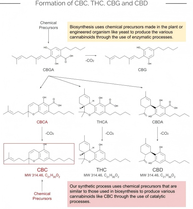 R: Definição: O CBC é um fitocanabinoide não tóxico derivado da planta de cannabis, sintetizado quimicamente a partir do ácido canabigerólico (CBGA). Sua fórmula molecular é C₂₁H₃₀O₂ e compartilha semelhanças estruturais com o THC e o CBD, mas se liga a receptores distintos.
