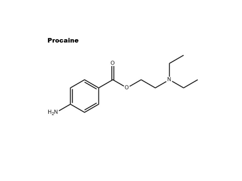 Procaína CAS 59-46-1 É um anestésico local do tipo éster, estruturalmente relacionado ao ácido aminobenzóico. Sua fórmula química é C₁₃H₂₀N₂O₂ e seu nome IUPAC é 2-(dietilamino)etil 4-aminobenzoato. Este composto tipicamente se apresenta como um pó cristalino branco, solúvel em água.